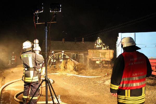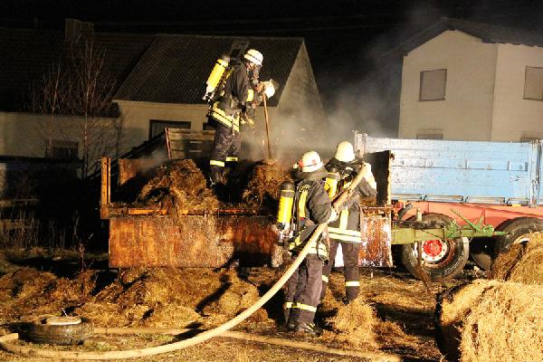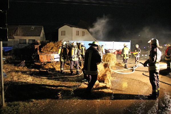 Humes. Um 22:54 Uhr wurden die Einsatzkräfte aus den Löschbezirken Humes, Hierscheid und Wiesbach am Abend des 24. März 2013 zu einem Brandeinsatz nach Humes alarmiert. Ein mit mehreren Strohballen vollgepackter Anhänger, der dort in der Steinackerstraße abgestellt war, stand lichterloh in Flammen.