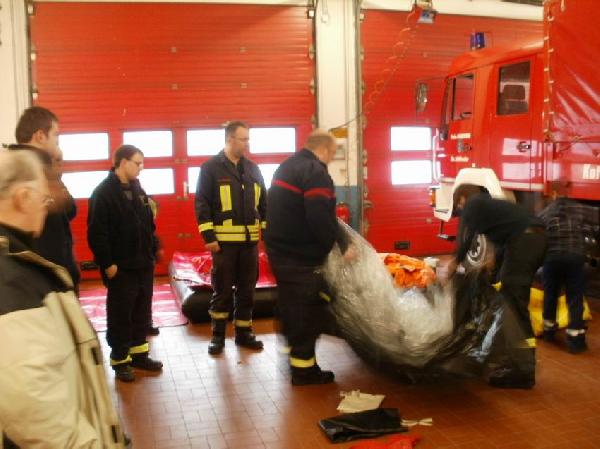 In der Unterweisung am 23. März wurden diese Ausrüstungsgegenstände nun vorgestellt und die Handhabung und grundlegende Einsatzrichtlinien besprochen. Im Vorfeld fanden sich die Löschbezirksführungen beider Löschbezirke sowie der Untereinsatzabschnittsleiter Dekon, Jürgen Jung, bereits zusammen, um Vorgehensweisen in einem möglichen Einsatzfall abzuklären.