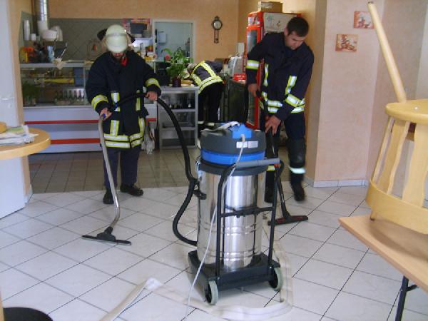 Gegen 07:40 Uhr wurde daraufhin der Löschbezirk Bubach-Calmesweiler alarmiert. Mit großen Wassersaugern, die bei den Kameraden in Bubach-Calmesweiler stationiert sind, wurden die Räume trocken gelegt.