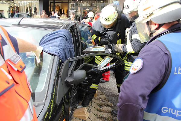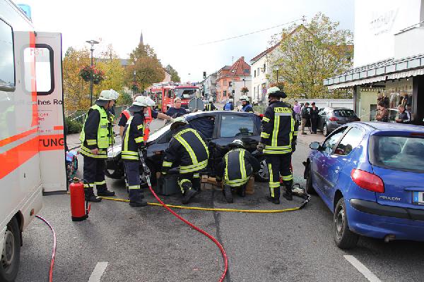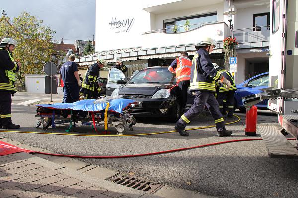 Der Peugeot krachte seitlich in den Ford des 86-jährigen und schob ihn über eine Verkehrsinsel. Während der Fahrer des Peugeot sein Fahrzeug unverletzt verlassen konnte, war die Fahrerseite des Ford durch den Unfall so deformiert, dass sich die Fahrzeugtür nicht mehr öffnen ließ. Während sich Ersthelfer um den verletzten Rentner kümmerten, wurden über Notruf die Rettungskräfte verständigt.