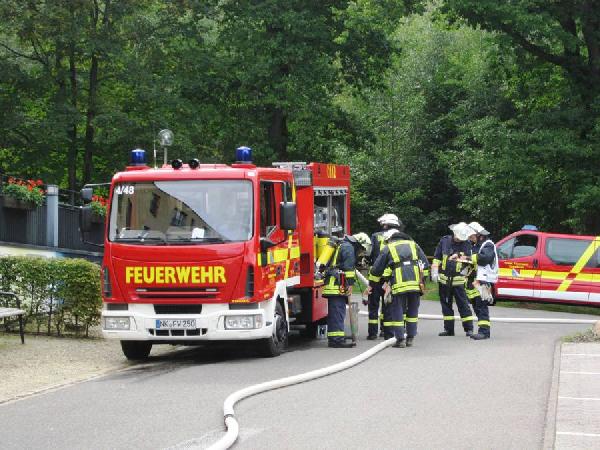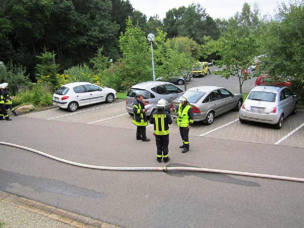 Gegen 15:00 Uhr fiel der Startschuss für die Übung. Vom Übungsleiter wurde lediglich mitgeteilt, dass die Brandmeldeanlage ausgelöst habe. Nach einer Erkundung durch den Einsatzleiter konnte schnell ein Brand im Untergeschoss des Haus Hubwald lokalisiert werden.