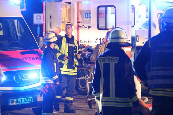 Neben der Feuerwehr, die mit 45 Kräften vor Ort war, waren auch die Polizei sowie vier Rettungswagen und zwei Notärzte im Einsatz. An dem Unfallfahrzeug entstand Totalschaden. Die vier Fahrzeuginsassen mussten zur weiteren Behandlung in umliegende Krankenhäuser gebracht werden, zwei von ihnen schweben nach ersten Erkenntnissen in Lebensgefahr.