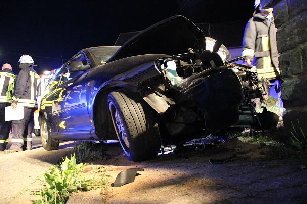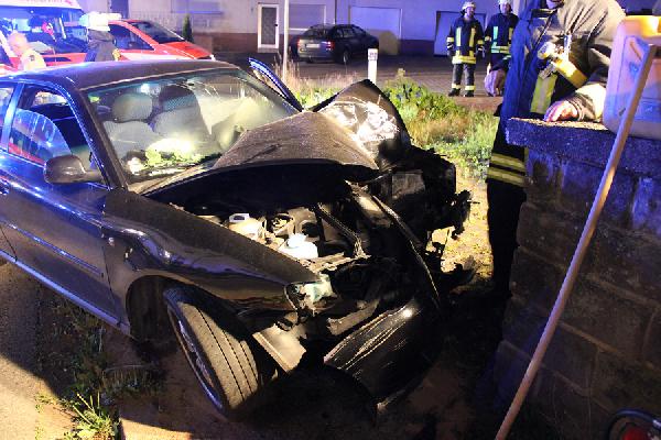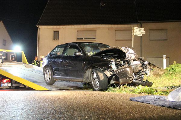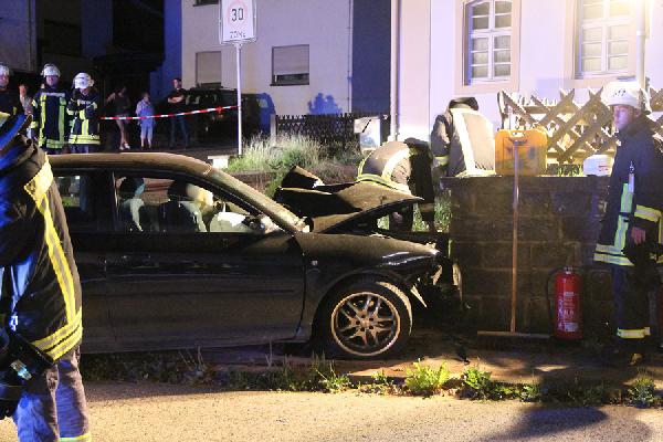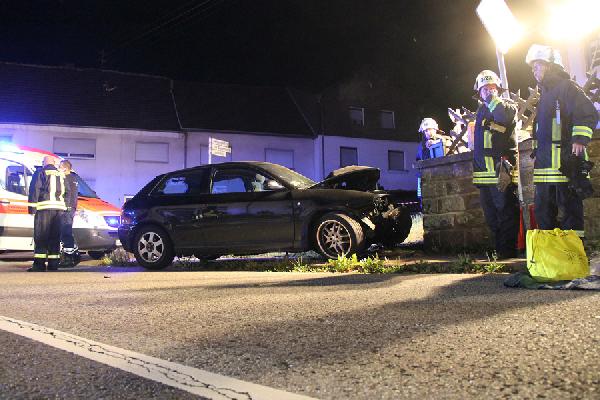 Dirmingen. Ein schwerer Verkehrsunfall ereignete sich in der Nacht zum 20. Juli 2014 in der Ortsmitte von Dirmingen. Ein mit vier Personen besetzter Audi war aus Richtung Lebach kommend in einer Rechtskurve nach links von der Fahrbahn abgekommen und frontal gegen eine Mauerecke in der Illinger Straße geprallt.
