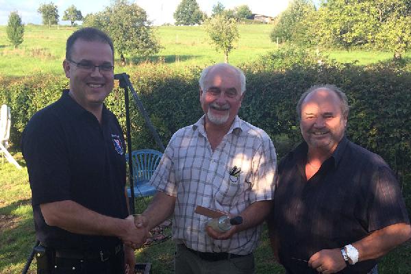 Auch der Löschbezirk Eppelborn ließ es sich nicht nehmen, dem Geburtstagskind zu gratulieren und so überbrachten der Löschbezirksführer Dr. Frank Schwan zusammen mit dem Vorsitzenden des Fördervereins Günter Schmitt die besten Glückwünsche der Kameraden und überreichten im Namen des Löschbezirks ein Präsent.
