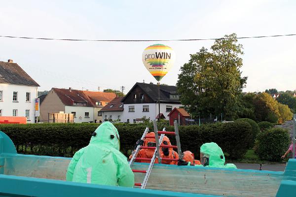 Während sich die Übung in der "heißen" Phase befand, zeigte sich plötzlich ein Problem, mit dem niemand gerechnet hatte: Ein Heißluftballon überfuhr die Einsatzstelle im Tiefflug. "Bei dieser Einsatzlage muss zu Beginn mit einer explosionsgefährlichen Atmosphäre gerechnet werden. Eine offene Feuerstelle (Gasbrenner) über einer Ex-Zone mit Menschen birgt ein enormes Schadenspotential", so der stellvertretende Wehrführer Christian Holz.