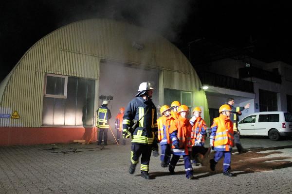 Eppelborn. 25 Jugendfeuerwehrangehörige aus den Löschbezirken Eppelborn, Bubach-Calmesweiler und Habach machten sich zusammen mit Ihren Betreuerinnen und Betreuern am Abend des 25.10.2014 samt Blaulicht und Martinshorn auf den Weg zum Firmengelände der Juchem Gruppe in Eppelborn.