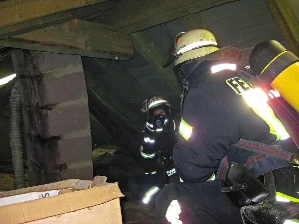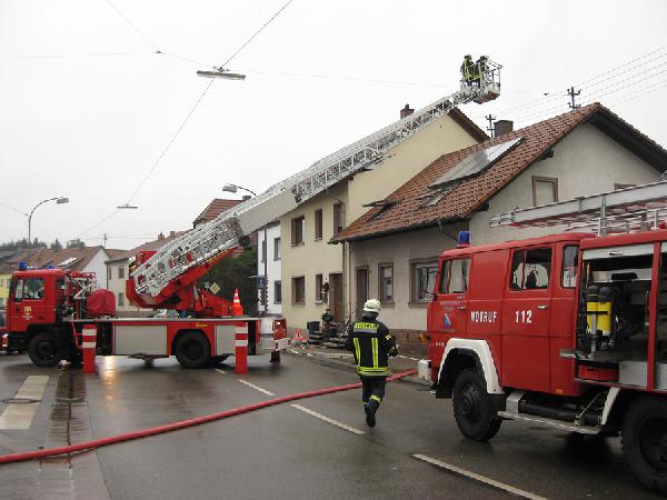 Beim Eintreffen konnten die Einsatzkräfte eine starke Verrauchung des Dachgeschosses feststellen, die Wand wies im Obergeschoss im Bereich des Kamins hohe Temperaturen auf, auch war ein Rauchaustritt feststellbar. Der Schornsteinquerschnitt war aber noch nicht verschlossen.