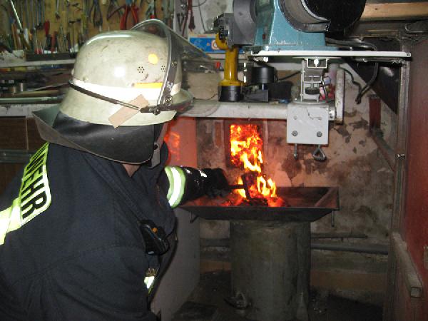 Brennende Glutreste wurde im Keller ausgeräumt und abgelöscht