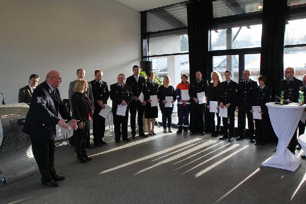 Es erhielten unter anderem die Leiter der einzelnen Abteilungen sowie die entsprechenden Gerätewarte, Atemschutzgerätewarte, Funkbeauftragte, Elektrofachkräfte, Beauftragter für die Unterweisung an der Füllanlage, Gemeindejugendbeauftragte sowie Jugendgruppensprecher und Jugendbeauftragte, Beauftragte für Ausbildung, Vorbeugender Brandschutz, Brandschutzerziehung, Absturzsicherung, Pressesprecher und Sicherheitsbeauftragte eine entsprechende Urkunde von der Bürgermeisterin ausgehändigt.