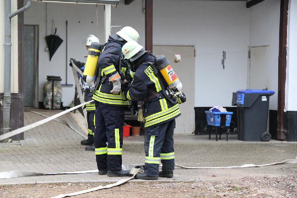 Beim Eintreffen der ersten Kräfte aus den Löschbezirken Dirmingen und Eppelborn hatte das Feuer bereits die Dachhaut durchdrungen, eine dichte Rauchsäule stand gut sichtbar über der Einsatzstelle. Erste Trupps versuchten noch, in einem Innenangriff das Feuer unter Kontrolle zu bringen, der Umfang des Brandes machte dies aber unmöglich. Über die Drehleiter aus Illingen wurde daraufhin mit der Brandbekämpfung von außen begonnen.