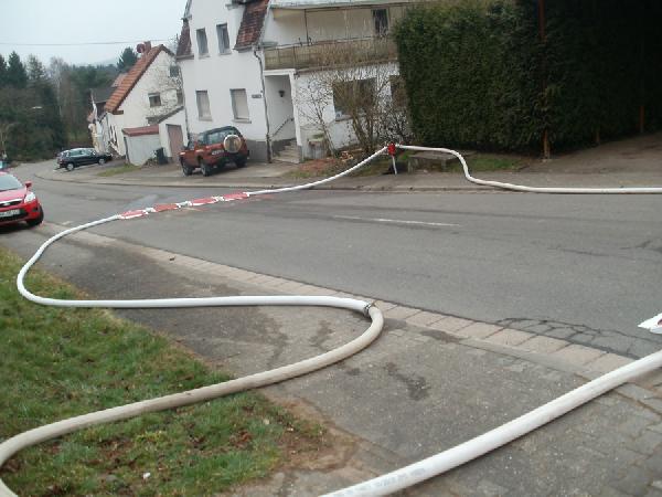 Als problematisch stellte sich früh die Löschwasserversorgung dar. Der Hydrant, der sich auf dem Gelände befindet, brachte nicht die für diesen Einsatz erforderliche Löschwassermenge, so dass eine rund 500 Meter lange Versorgungsleitung mit dem Schlauchwagen bis zur Tholeyer Straße verlegt werden musste. Zusätzlich wurden Tankfahrzeuge aus Illingen, Uchtelfangen und Neunkirchen sowie der Löschbezirk Bubach-Calmesweiler angefordert.