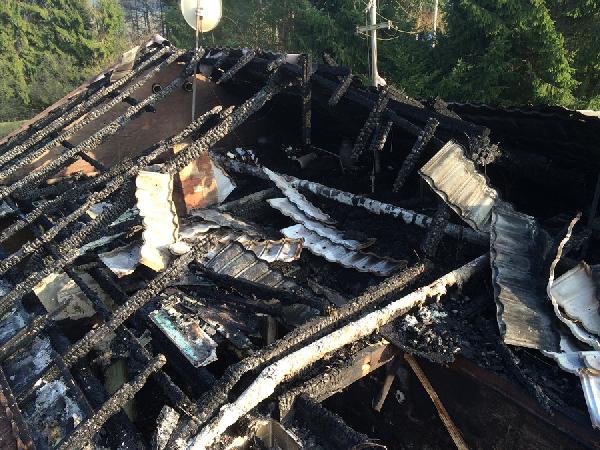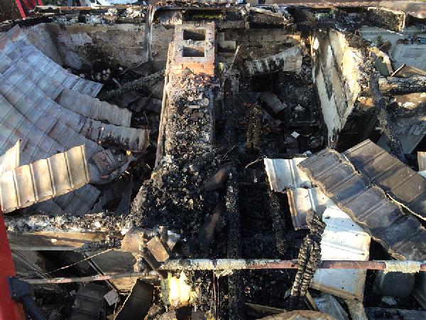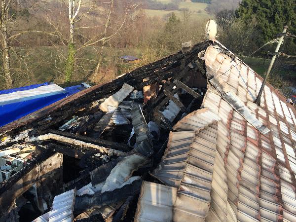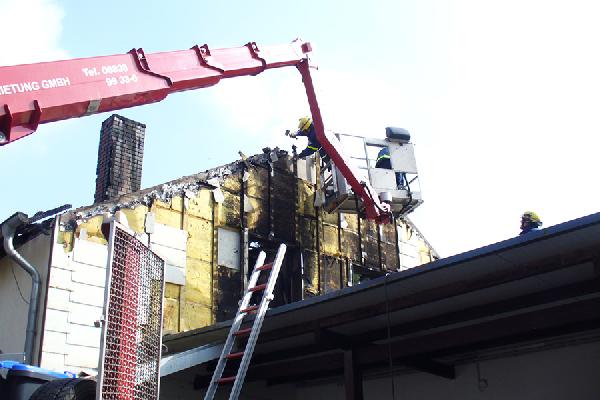 Erste Aufgabe war, den oberen Giebelteil des schwer beschädigten Wohnhauses so abzutragen, dass keine weiteren Schäden an dem Gebäude entstehen. Auch der Kamin musste von einer Hubarbeitsbühne aus Stein für Stein abgetragen werden.
