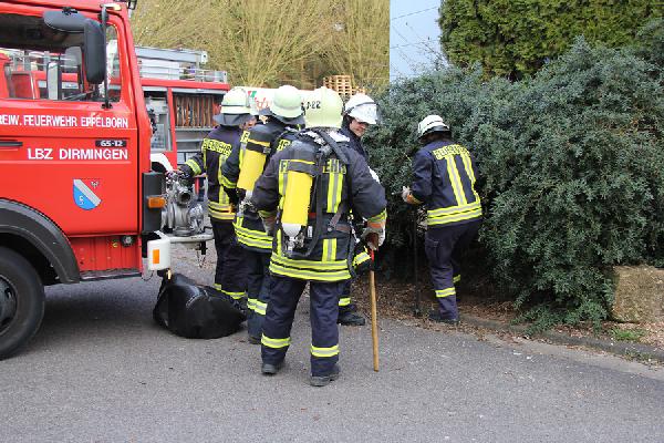 Der ebenfalls eingesetzte Löschbezirk Eppelborn, der kurz nach den Kameraden aus Dirmingen am Übungsort eintrifft, unterstützt die Suche nach den Vermissten. Parallel dazu wird am Brühlpark Löschwasser aus der Ill entnommen und über eine Schlauchleitung bis zum Einsatzort gepumpt. Dann kann auch der Löschangriff von außen beginnen.