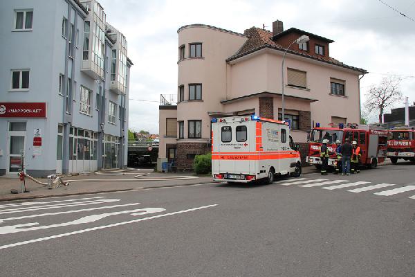 Eppelborn. Dichter Rauch steigt am Vormittag des 09. Mai 2015 hinter einem Geschäftshaus am Kirchplatz in Eppelborn auf. Ein Palettenstapel ist im Hinterhof, unmittelbar hinter dem Pfarrsaal in Brand geraten. Anwohner und Passanten, einer davon ein Feuerwehrmann, die auf das Feuer aufmerksam geworden waren, versuchen noch, mit einem Gartenschlauch und mehreren Feuerlöschern den Brand zu löschen. Doch die Flammen sind bereits zu groß: Die Löschversuche bleiben erfolglos und können nicht verhindern, dass das Feuer auf einen Twingo übergreift.