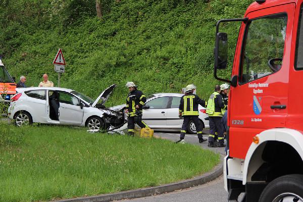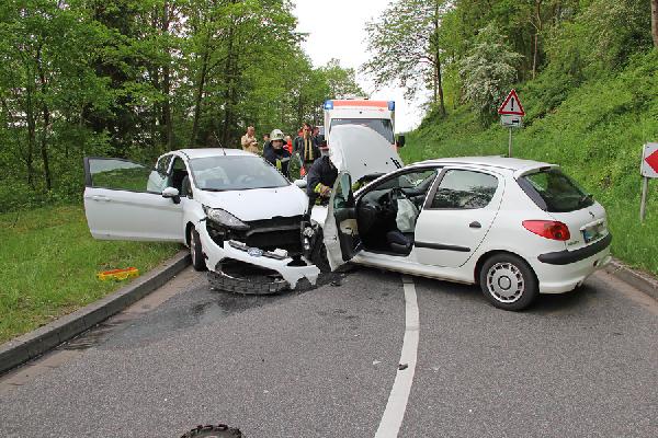 Eppelborn. Ein Ford und ein Peugeot sind am Morgen des 11. Mai 2015 am Ortsausgang von Eppelborn in Richtung Habach auf der L301 frontal zusammengestoßen. Im Kurvenbereich der Einmündung zur L300 war einer der Pkw auf die Gegenfahrbahn geraten und mit dem entgegenkommenden Fahrzeug kollidiert.