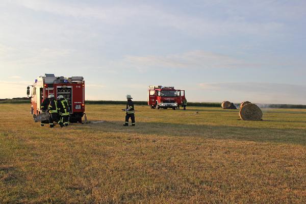 Die Einsatzkräfte aus den Löschbezirken Hierscheid und Eppelborn fanden bei ihrem Eintreffen zwei brennende Rundballen vor, von denen einer bereits größtenteils herunter gebrannt war. Mit Dunghaken wurden die Ballen auseinander gezogen und kontrolliert abbrennen gelassen. Reste wurde dann mit einem C-Rohr abgelöscht.