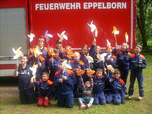 Auch die Kids aus den Jugendfeuerwehren Habach und Eppelborn beteiligten sich tatkräftig an der Aktion. Die Jungs und Mädchen bastelten und bemalten zahlreiche Windräder und trugen so zum Rekordversuch bei. Die Jugendbetreuer hatten ausserdem eine kleine Olympiade aus Leinenweitwurf, Dosenwerfen und anderen Spielen vorbereitet, bei der es kleine Preise zu gewinnen gab. Sieger waren am Ende aber alle, und so konnte der Tag bei Schwenkbraten und Rostwürsten abgeschlossen werden.