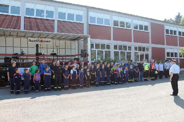 Am Feuerwehrgerätehaus angekommen hieß es "Jugendfeuerwehr antreten". In den anschließenden Grußworten von Bürgermeisterin, Gemeindejugendbetreuer, Kreisbrandinspekteur, Wehrführer und Kreisjugendbeauftragtem wurde immer wieder deutlich was für eine tolle und leistungsstarke Jugendfeuerwehr die Feuerwehr Eppelborn vorweisen kann. Ebenfalls positiv zu sehen ist die große Anzahl der Mädchen in der Jugendfeuerwehr. Dies ist eine sehr gute Entwicklung, denn auch Frauen sind gerne im Feuerwehrdienst gesehen. Für die Nachwuchsgewinnung gilt wie immer der Appell: "Macht Werbung für die Feuerwehr".