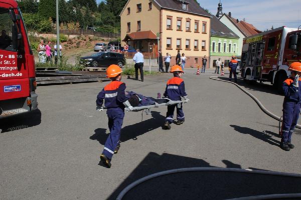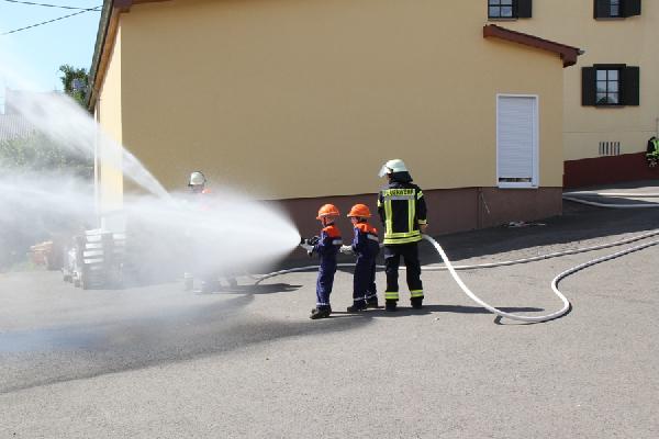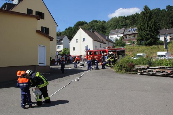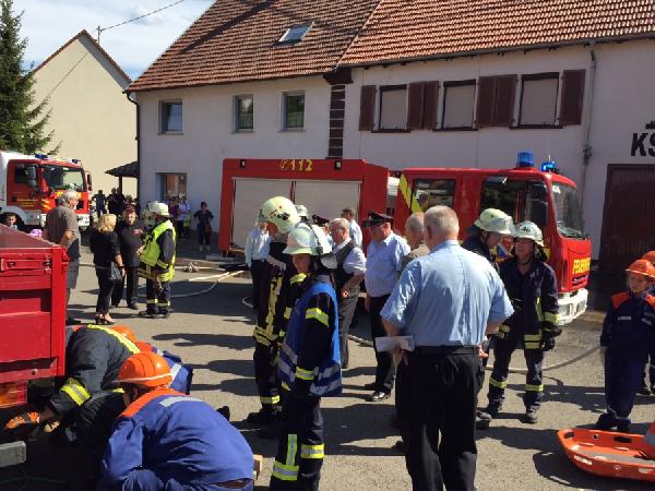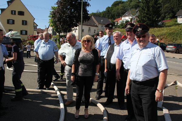 Zahlreiche Zuschauer und Ehrengäste hatten sich am Übungsobjekt versammelt um sich vom Können der Jugendfeuerwehr zu überzeugen. Neben der Bürgermeisterin Frau Birgit Müller-Closset und Vertreter des Rathauses waren auch die Ortsvorsteher der einzelnen Ortsteile anwesend. Auch Gäste der Feuerwehr konnten begrüßt werden. So überzeugten sich auch Kreisbrandinspekteur Werner Thom, Kreisjugendbeauftragter Jan Rumetsch, die Wehrführung der Feuerwehr Eppelborn um Klaus Theis und Wolfgang Braun, Gemeindejugendbeauftrager Karl Paul mit Stellvertreter Ralf Schmitt sowie die Löschbezirksführer der Feuerwehr Eppelborn vom Leistungsstand einer starken Jugendfeuerwehr.
