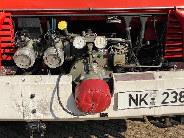 Zusätzlich zu der an der Fahrzeugfront angebrachten Vorbaupumpe mit einer Förderleistung von 1600 Litern pro Minut bei 8 bar Ausgangsdruck steht ausserdem eine ins Heck eingeschobene Tragkraftspritze mit nochmals 800 Litern pro Minute zur Verfügung.