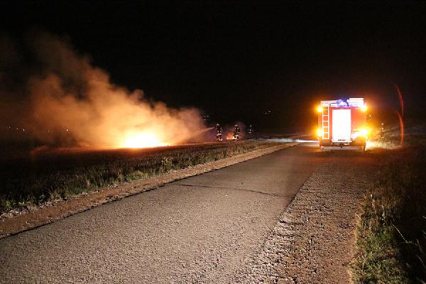 Der Mann versuchte noch, mit Hilfe von Wasserflaschen aus seinem Fahrzeug den Brand einzudämmen, was aber erfolglos war. Erst den kurz darauf eintreffenden Einsatzkräften aus den Löschbezirken Humes und Wiesbach gelang es mit mehreren Rohren, das Feuer zu löschen. Der inzwischen informierte Landwirt war ebenfalls kurz darauf zur Stelle und pflügte die betreffende Stelle um, um ein erneutes Aufflammen zu verhindern.