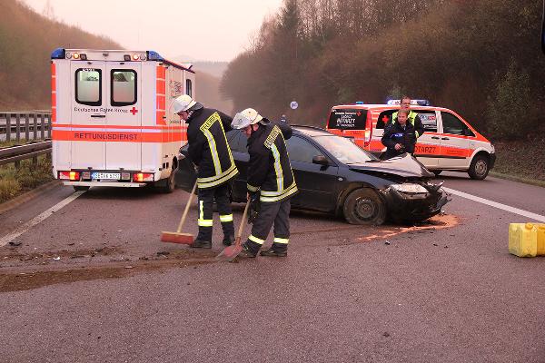 Nach ersten Erkenntnissen der Polizei waren keine weiteren Fahrzeuge in den Unfall verwickelt. An dem Unfallfahrzeug entstand Totalschaden. Die Autobahn A1 musste während der Bergungsarbeiten für rund eine halbe Stunde in Fahrtrichtung Trier voll gesperrt werden, danach konnte der Verkehr bis zum Abtransport des Fahrzeugwracks über die Standspur an der Unfallstelle vorbeigeleitet werden. Warum der Mann von der Straße abkam ist unklar.
