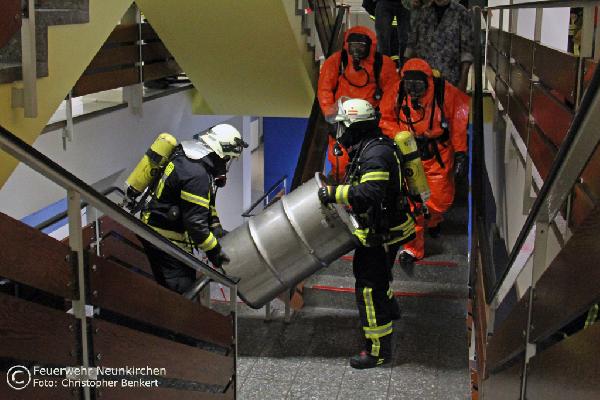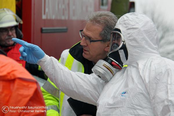 Die Neunkircher Feuerwehr befand sich mit den Löschbezirken Neunkirchen-Innenstadt, Wellesweiler und Wiebelskirchen vor Ort. Mit rund 50 Einsatzkräften aus dem ganzen Landkreis war der Gefahrstoffzug angerückt. Außerdem kam auch die aus dem Leitenden Notarzt sowie dem Organisatorischen Leiter bestehende Einsatzleitung des Rettungsdienstes zur Führung der angerückten Rettungs- und Krankentransportwagen.