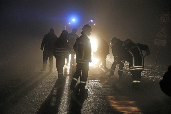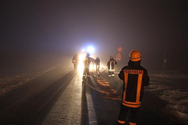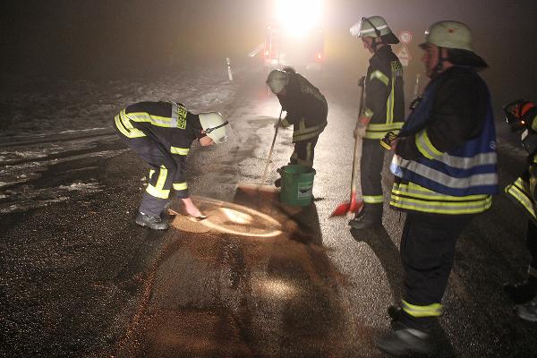 Auf rund 10 Metern Länge fanden die Einsatzkräfte eine dicke Ölspur vor. Mit Bindemitteln wurde die gefährliche Stelle abgetreut und die Einsatzstelle an die Polizei übergeben. Der Verursacher der Ölspur ist unbekannt. Der Löschbezirk Dirmingen war mit zwei Fahrzeugen und 18 Kräften im Einsatz.