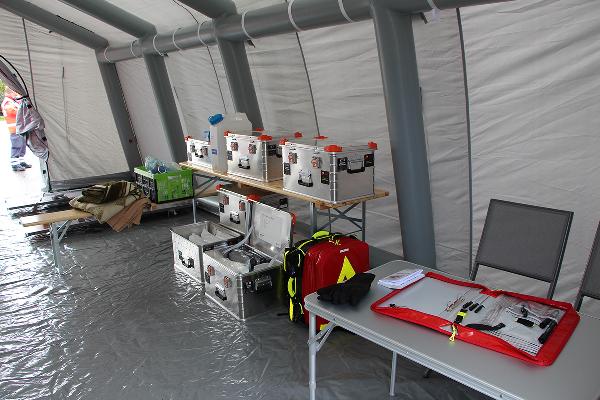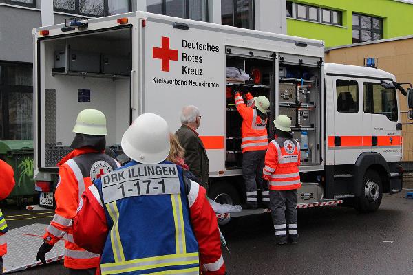 Im Anschluss an die Katastrophenschutzübung wurde ein neuer Sanitätsgerätewagen an das DRK Merchweiler übergeben. Damit wurde nun das zweite vom Saarland an den Landkreis Neunkirchen zur Verfügung gestellte Fahrzeug offiziell übergeben. Ebenso erhielten einige Hilfeorganisationen neue Meldeempfänger aus Katastrophenschutzmitteln des Kreises.