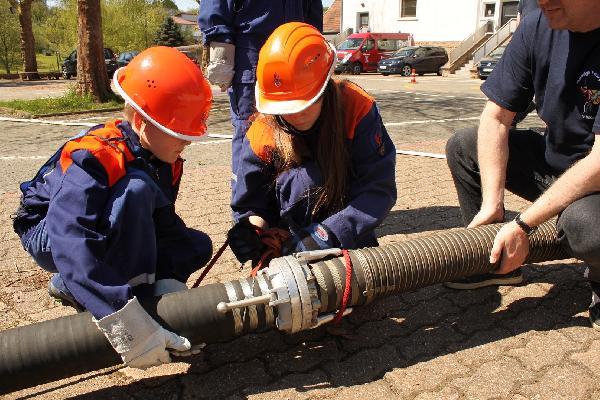Samstags wurde ein Alarm im Bereich in Am Sandberg und Eschwald in Wiesbach ausgelöst. Bei einem Zimmerbrand in einem Gartenhaus kam der Rauch zwar wieder aus der Nebelmaschine, die jungen Feuerwehrleute zeigten aber beispielsweise beim Schläuche aufrollen und dem Anschließen an den Hydranten, dass alle Handgriffe sitzen. Die Aufgabe, das Übungsobjekt nach vermissten Personen zu durchsuchen und einen Löscheinsatz durchzuführen wurde professionell gemeistert, wovon sich Wehrführer Klaus Theis selbst vor Ort überzeugte.
