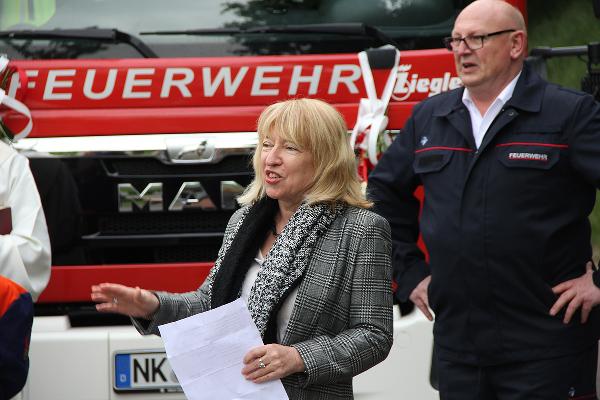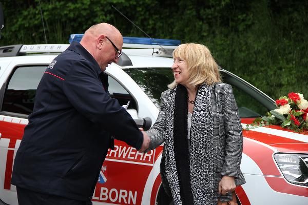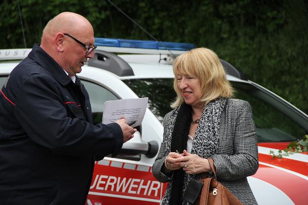 Bürgermeisterin Birgit Müller-Closset freute sich, der Wehrführung sowie dem Löschbezirk Macherbach um Löschbezirksführer Thomas Theis und dem stellvertretenden Löschbezirksführer, Frank Bastuck, neue Fahrzeuge zur Verfügung stellen zu können. Die Gemeinde Eppelborn hat im Rahmen ihres Brandschutzbedarfs- und Entwicklungsplans 2015 rund 218.000€ zur Aufrechterhaltung der Sicherheit der Bürgerinnen und Bürger der Gemeinde investiert.