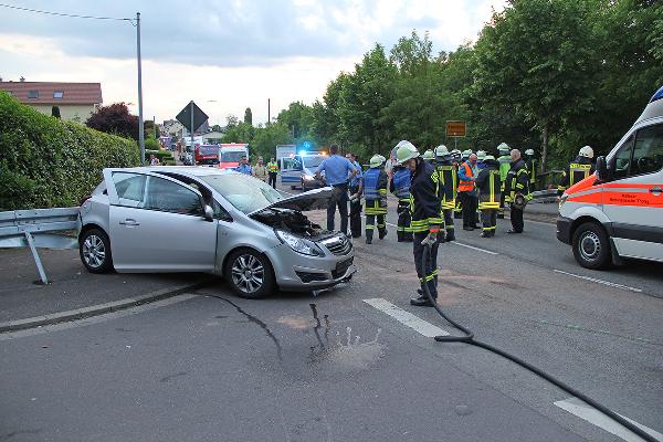 Mit der Meldung "Verkehrsunfall mit eingeklemmter Person" wurden neben Polizei und Rettungsdienst auch die Feuerwehr aus den Löschbezirken Eppelborn, Hierscheid, Bubach-Calmesweiler und Lebach gegen kurz vor 21 Uhr alarmiert. Beim Eintreffen der Einsatzkräfte hatten sich beide Insassen des Geländewagens (beide 23) und die Fahrerin des Corsa (26) aus eigener Kraft und glücklicher Weise mit nur leichten Verletzungen aus ihren Fahrzeugen befreien können und wurden von Ersthelfern vorbildlich betreut. Medizinisches Fachpersonal übernahmen die weitere Vorsorgung der Verletzten bis zum Eintreffen des Rettungsdienstes.