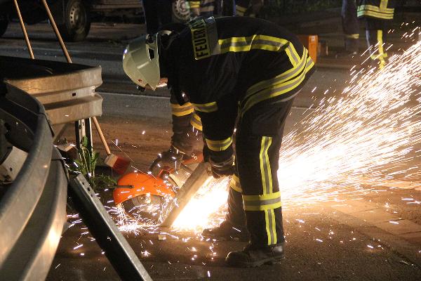 Der Motor des Corsa lief trotz abgezogenem Zündschlüssel weiter und musste unter schwierigen Bedingungen abgestellt werden. Die Fahrzeugbatterien wurden abgeklemmt und auslaufende Betriebsstoffe mit Bindemitteln aufgenommen. Nach der Bergung der Fahrzeuge mussten Teile des Leitplankenpfosten mit einem Motortrennschleifer entfernt werden. Der Gemeindebauhof stellte noch in der Nacht Bauzäune zur Sicherung auf. Wegen der einsetzenden Dunkelheit musste die Einsatzstelle ausgeleuchtet werden. Zur Beseitigung der Ölverschmutzungen auf der Fahrbahn wurde ein Fachunternehmen hinzugezogen.