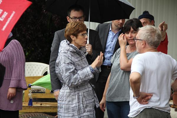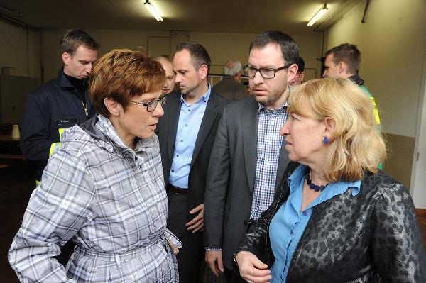 Am späten Abend besuchte Innenminister Klaus Bouillon die Einsatzkräfte und sprach mit Bürgermeisterin Birgit Müller-Closset und Ortsvorsteher Manfred Klein. Sie alle sprachen den beteiligten Einsatzkräften und Helfern Dank und Annerkennung für die hervorragende Arbeit aus. Insgesamt waren rund 170 Kräfte der Feuerwehr, 50 Helfer der THW-Ortsverbände Spiesen-Elversberg, Illingen und Neunkirchen im Einsatz. Das DRK übernahm mit zahlreichen Helfern die Verpflegung der eingesetzten Kräfte. Gegen 1 Uhr in der Nacht konnten die Kameraden der Feuerwehr abrücken, die Helfer des THW übernahmen bis zum Morgen die weiteren Arbeiten.