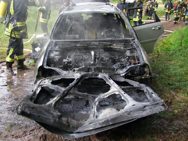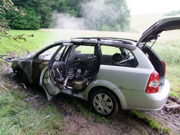 An dem Pkw entstand durch den Brand Totalschaden, Personen wurden nicht verletzt. Vor Ort war auch ein Kommando der Polizei im Einsatz.