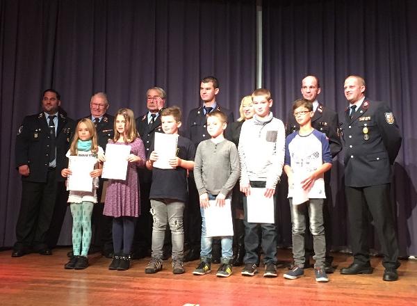 Im Anschluss konnte er zusammen mit der Bürgermeisterin die Urkunden an die neu eingetretenen Jugendwehrmitglieder übergeben. Fabian Müller wurde zum Oberlöschmeister befördert. Manuel Braun erhielt ein Geschenk der Gemeinde für 25 jährige Mitgliedschaft in der Feuerwehr. Die weiteren Ehrungen und Beförderungen werden später vorgenommen, da die betroffenen Kameraden nicht am Familienabend teilnehmen konnten.
