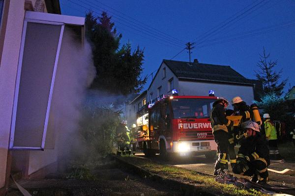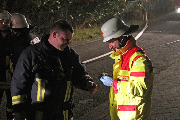 Der Brand war im Heizungsraum im Keller ausgebrochen und konnte sich durch einen Versorgungsschacht schnell bis zum Badezimmer im Erdgeschoss ausbreiten. Vier Personen mussten in dem komplett verrauchten Gebäude gefunden und der Brand bekämpft werden. Mit Atemschutzgeräten ausgerüstet wurde die Räume von mehreren Trupps abgesucht und die vermissten Bewohner schnell gerettet. Die Helfer der First-Responder-Gruppe übernahmen dann vor dem Gebäude die weitere Betreuung und Versorgung.