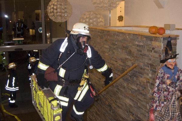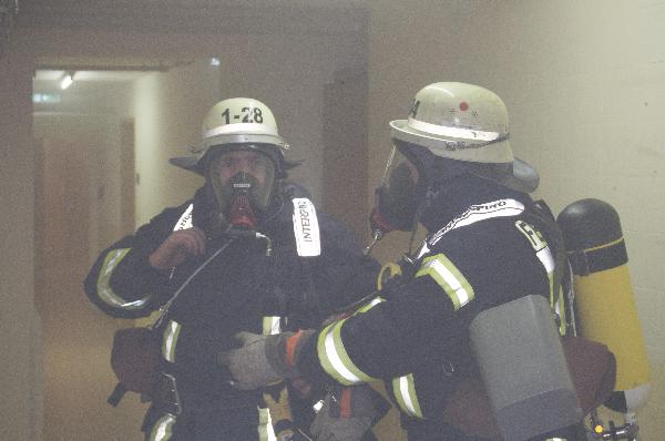 Der Angriffstrupp musste aufgrund der Rauchentwicklung unter Atemschutz vorgehen. Schnell konnte mit Hilfe der Feuerwehrpläne, die der Betreiber vorbildlich erstellt hat, der Brandort lokalisiert werden. Innerhalb kürzester Zeit war die Person gerettet, und der Schwelbrand gelöscht.