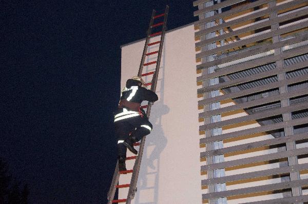 Parallel zu dem Brandeinsatz war der Löschbezirk auch bei einer Personenrettung aus dem Obergeschoss gefordert. Eine Person war durch die Aufregung gestürzt, und musste in Absprache mit dem Rettungsdienst schonend über Leitern ins Erdgeschoss gebracht werden. Auch dieses Übungsszenario wurde effektiv und erfolgreich abgearbeitet.