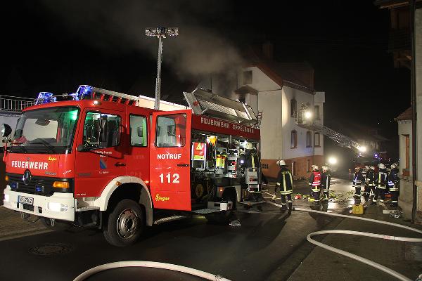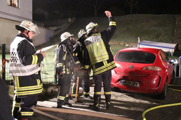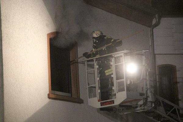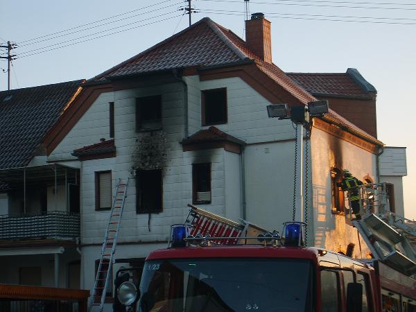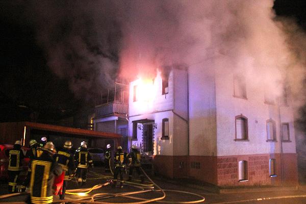 Beim Eintreffen der ersten Einsatzkräfte schlugen Flammen aus einem Fenster im ersten Obergeschoss. Alle Bewohner hatten das Gebäude zu diesem Zeitpunkt verlassen und waren in Sicherheit. Unter Atemschutz drangen Trupps in das Gebäude bis zum Brandherd vor. Das Feuer war augenscheinlich im Bereich der Elektroverteilung ausgebrochen und hatte schnell auf weitere Gebäudeteile und Räume übergegriffen.