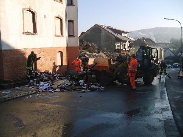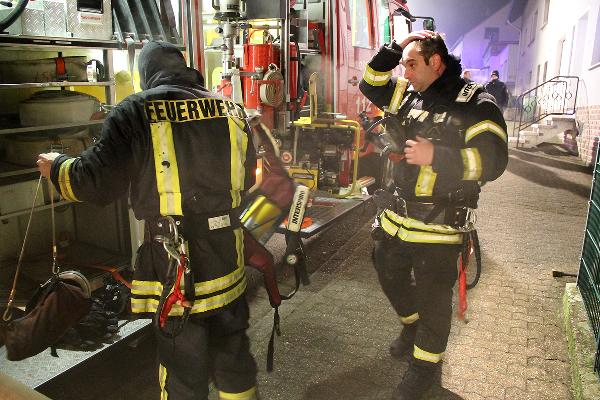 Probleme bereiteten die eisigen Temperaturen unter dem Gefrierpunkt: Löschwasser gefror sofort und verwandelte Fußwege und Straße in eine rutschige Fläche. Der Gemeindebauhof rückte mit Streusalz und einem Streufahrzeug an, um die Gefahr zu beseitigen.