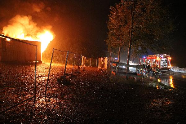 Eppelborn. Meterhoch schlugen in der Nacht zum 12. August 2017 bereits die Flammen aus einem Baucontainer, als Autofahrer den Brand auf der Baustelle an der Autobahnbrücke an der A1 in Höhe der Anschlussstelle Eppelborn bemerken. Sie informierten die Leitstelle über den Notruf 112, die daraufhin sofort Alarm für die Löschbezirke Eppelborn und Dirmingen auslöste.