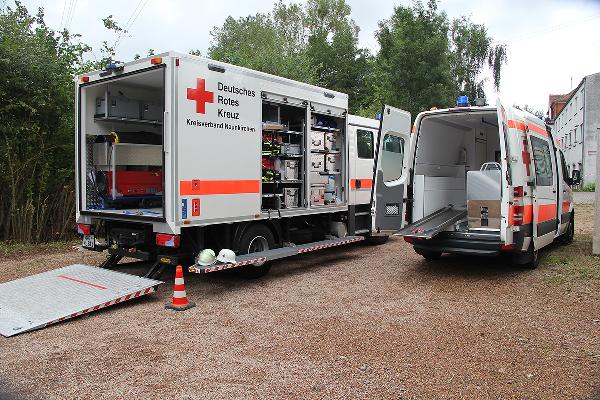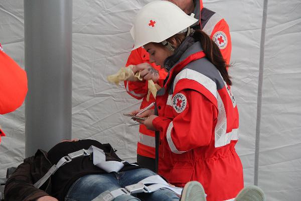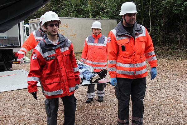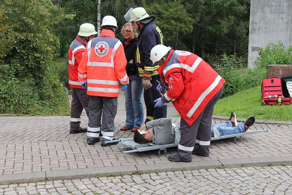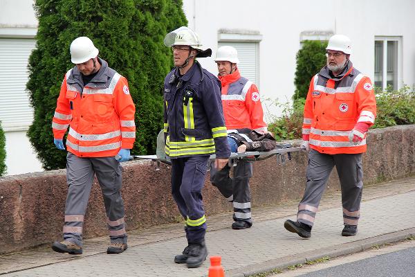 Parallel dazu bauten die 18 Helfer des Roten Kreuzes aus den Ortsvereinen Wiesbach und Ottweiler eine Verletztensammelstelle und einen Behandlungsplatz auf einem nahe gelegenen Parkplatz auf und bereiteten sich auf die Übernahme der Geretteten vor. Bereits in den ersten 20 Minuten mussten mehr als 5 Verletzte aufgenommen, registriert, gesichtet und versorgt werden.