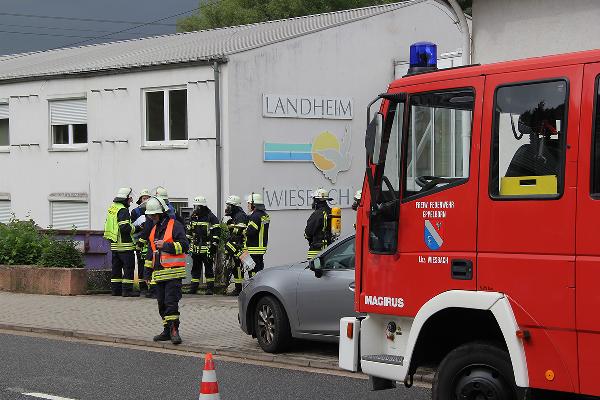 Gegen 15:00 Uhr wurden die Einsatzkräfte zum Landheim nach Wiesbach gerufen. Der Hausbesitzer hatte den beißenden Geruch bemerkt und sich ins Freie gerettet, konnte aber weitere Personen, die sich noch in dem Gebäude aufhielten, nicht mehr warnen. Aufgabe der Feuerwehr war es nun, das weitläufige und verwinkelte Gebäude strukturiert zu durchsuchen und die verbleibenden 14 Personen unter Atemschutz zu retten.