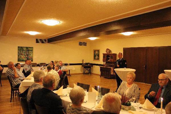 In seiner Begrüßungsrede konnte Löschbezirksführer René Finkler unter anderem den ersten Beigeordneten der Gemeinde Eppelborn Berthold Schmitt begrüßen, der die in Urlaub befindliche Bürgermeisterin vertrat. Des Weiteren waren auch Wehrführer Klaus Theis, der Kreisbrandinspekteur des Landkreises Neunkirchen Werner Thom sowie Ortsvorsteher Peter Dörr der Einladung gefolgt.