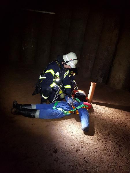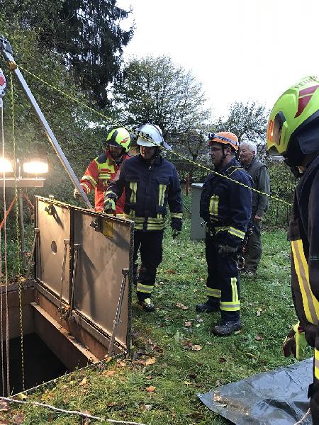 Hier übten die Helfer aus den verschiedenen Feuerwehren die Rettung einer „abgestürzten Person“ in einen Schacht.