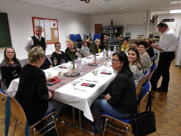 Nach dem Sektempfang fand Löschbezirksführer Markus Lambert Worte des Dankes für die anwesenden Frauen, die den Löschbezirk bei den verschiedensten Veranstaltungen tatkräftig unterstützen. Heino Molter, stellvertretender Löschbezirksführer und Küchenchef im Löschbezirk, der auch die Idee zu dem Dinner hatte, leitete souverän das Event. Die Tische im Schulungsraum waren geschmackvoll dekoriert und so begann der Auftakt des Abends mit einer leckeren Vorspeise mit Namen "Mümmelmann's Liebling" (Karottensuppe mit Ingwer). Es folgten, in Zeitabständen, noch weitere vier Gänge: