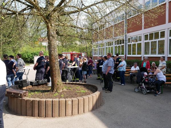 Pfarrer Schneider und Pfarrer Bokumabi nahmen die Einsegung vor und baten Gott darum, dass die Feuerwehrleute mit diesem Fahrzeug den in Not geratenen Menschen immer helfen können. Auch für eine gesunde Heimkehr nach den Einsätzen wurde gebetet.