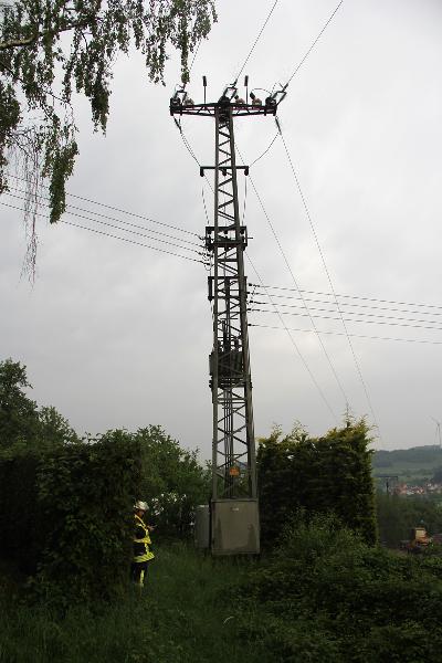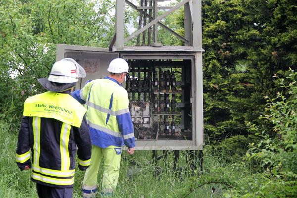 Im Ortsteil Humes schlug ein Blitz in eine Trafostation ein und verursachte einen Brand in einem Schaltkasten. Da keine Gefahr einer Ausbreitung des Feuers bestand, warteten die Einsatzkräfte auf das Eintreffen des Energieversorgers, der die Anlage erst spannungsfrei schaltete. Dann konnte der Schrank geöffnet und das Feuer mit einem Kohlendioxidlöscher bekämpft werden.