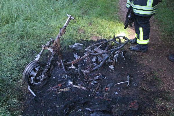 Die Einsatzkräfte der Feuerwehr fanden den Roller auf einem Verbindungsweg zwischen Brühlpark und Bahnhof vor. Mit einem C-Rohr konnte der Brand schnell gelöscht werden. Merkmale des Rollers und der Fundort deuteten daraufhin, dass es sich um das zuvor gesuchte Fahrzeug handelte.